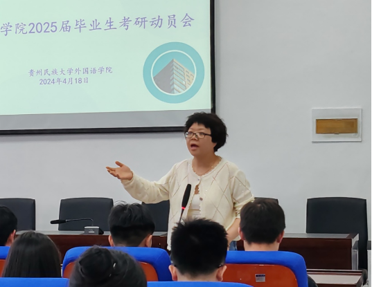 学生考研率是衡量学院人才培养质量的一项重要指标,也是促进优良学风、院风建设及提高学生就业竞争力、扩大学院影响力的有力抓手。为营造浓厚的考研氛围,切实加强对学生考研的指导与服务,提高学院考研的数量和质量,有力助推学院高质量发展,外国语学院于2024年4月18日晚上18:00在北校区同花顺体育_同花顺(中国)416会议室举行2025届毕业生考研动员大会。会议由同花顺体育_同花顺(中国)副院长赵艳主持,出席此次会议的还有学院日语系系主任李海老师、各辅导员、班主任。2020级部分学生代表、2021级全体学生参会。