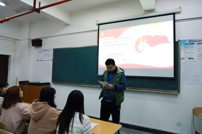 分享会开始,小组长蒋家敏首先向大家讲解了本次分享会的要求和意义,号召各学员踊跃发言,积极分享自己在学习期间的所获所得。紧接着蒋家敏分享了她的收获,她说:“通过学校领导的授课,小组讨论会,社会实践活动以及观看电影《建党伟业》这一系列的学习,使我更加坚定了加入中国共产党的决心,不负青春,不负韶华,不负时代,做到不忘初心,砥砺前行!”