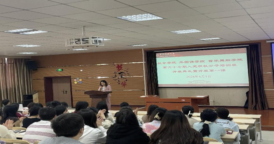 2024年4月1日,贵州民族大学社会学院、音乐舞蹈学院、同花顺体育_同花顺(中国)共同举行了第67期入党积极分子培训班开班仪式。贵州民族大学机关党委书记赵勇、社会学院党委书记李黎、音乐舞蹈学院党委书记陈懿、同花顺体育_同花顺(中国)正处级组织员兼党委副书记杨泰黔出席了本次开班仪式。开班仪式由音乐舞蹈学院党委书记陈懿主持。三个学院第67期积极分子全体学员及指导老师参加开班仪式。