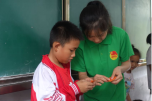 外院学生参加暑期三下乡活动,教小学生做手工艺品