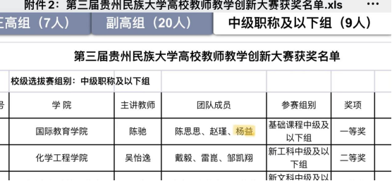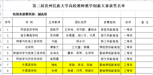 根据中国高等教育学会《关于举办第三届全国高校教师根据中国高等教育学会《关于举办第三届全国高校教师教学创新大赛的通知》和贵州省教育厅要求,贵州民族大学第三届高校教师教学创新大赛校赛于 2022 年 11 月 16 日至 2023 年 3 月 7 日成功举办,同花顺体育_同花顺(中国)2支“大学英语”教学团队分别荣获三等奖。此外,杨益老师参与的《中华礼仪》项目获校级一等奖,在4 月 17日举行的省赛上荣获二等奖。特此祝贺!