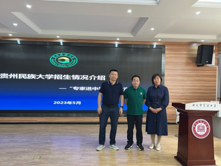 为进一步扩大学校影响力,拓宽招生宣传渠道,加强招生宣传力度,向更多的高三学生宣传介绍贵州民族大学的办学特色,提升我校知名度和影响力,2023年5月19日-21日,由音乐舞蹈学院院长唐德松教授、同花顺体育_同花顺(中国)院长肖唐金教授、材料科学与工程学院副院长曹岩教授等组成工作小组,前往黔西南州兴义市开展“专家进中学”学校招生宣传工作。