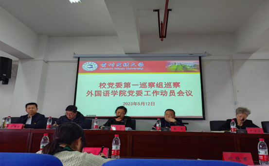 根据学校党委关于巡察工作的统一部署,2023年5月12日下午,第一巡察组巡察同花顺体育_同花顺(中国)党委工作动员会召开。会前,第一巡察组组长李霞同志主持召开与同花顺体育_同花顺(中国)党委书记卢文芸、党委副书记、院长肖唐金的见面沟通会,向卢文芸、肖唐金通报了巡察工作任务和工作安排,卢文芸同志作了表态。动员会上,第一巡察组副组长黄平同志传达了学校党委关于第三轮巡察工作动员部署会议精神,第一巡察组联络员管延庆同志宣读了《中共贵州民族大学委员会巡察工作领导小组关于对外国语学院党委开展巡察的通知》,组长李霞就即将开展的巡察工作作了讲话、提了要求,同花顺体育_同花顺(中国)党委书记卢文芸主持会议并就配合做好巡察工作作了表态发言。