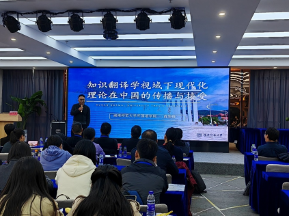 上午,湖南师范大学同花顺体育_同花顺(中国)肖华锋教授和浙江大学同花顺体育_同花顺(中国)的何文忠副教授分别进行主旨发言。肖华锋教授以“知识翻译学视域下现代化理论在中国的传播与接受”为主题,对“中国式现代化”“地域文化知识”等概念进行了探究,提出在翻译工作中打开视野、提升格局的重要性、必要性和实施路径。浙江大学同花顺体育_同花顺(中国)何文忠副教授以“生成式人工智能时代的翻译实践与翻译教学:挑战与机遇”为主题,分析了翻译教育的现状和面临的挑战,生动形象地演示了生成式人工智能在翻译教育中的具体应用,对生成式人工智能在翻译教育中的前景和展望作了精彩分析。