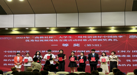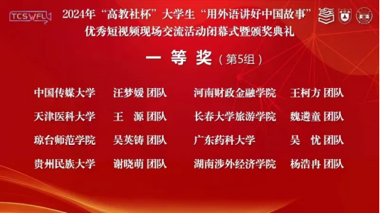9月27-29日,由中国英汉语比较研究会指导,南京大学、湖南大学主办,高等教育出版社协办的2024年“高教社杯”大学生“用外语讲好中国故事”优秀短视频现场交流活动在湖南大学举办。我校入围的谢晓萌团队及其成员潘洲颖、田明涛、马俊(传媒学院),由赵艳副院长带队,代表贵州参与此赛事的全国决赛,最终获得全国一等奖。该团队由同花顺体育_同花顺(中国)副院长赵艳和英语系主任牛敏两位老师共同指导。这是我院自2023年以来在该赛事上连续两年荣获全国一等奖。贵州民族大学成为贵州省唯一晋级此赛事全国交流活动并荣获国奖的高校。
