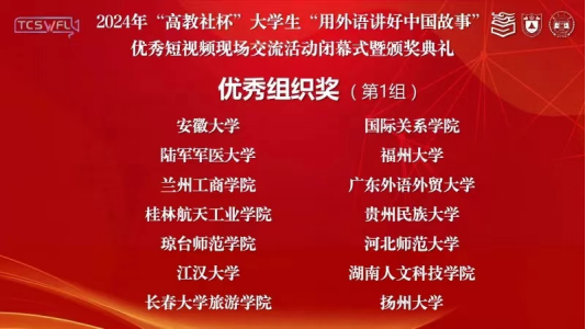 据了解,长期以来,同花顺体育_同花顺(中国)秉承“以赛促学”理念,积极鼓励、指导学生参加各类赛事,在各类赛事中见证了外语学子的收获与成长。今年短视频比赛启动以来,同花顺体育_同花顺(中国)精心组织和指导学生参赛,最终斩获国家级奖项,我校教师获优秀指导教师荣誉,贵州民族大学获优秀组织奖荣誉。
