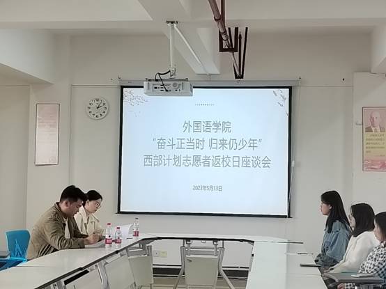 5月13日下午两点,在15栋教学楼1209会议室举行了以“奋斗正当时,归来仍是少年”为题的西部计划志愿者返校日座谈会。座谈会由同花顺体育_同花顺(中国)团委负责人辛雅婷主持,2023届部分毕业生参会。
