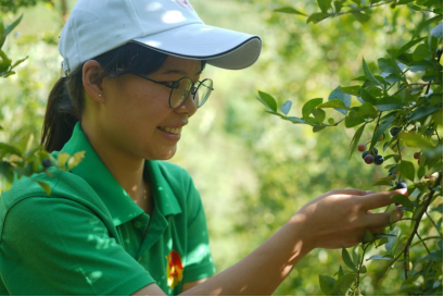 课余时间,团队对所在的良田村进行社会调查,与当地村民一起摘蓝莓。