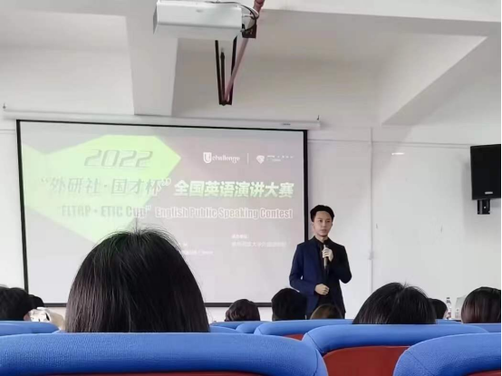2022年10月21日,我院组织了“外研社·国才杯”演讲大赛校园选拔赛,演讲比赛主题:China’s Wisdom for the World。因处于疫情防控特殊时期,需遵守防疫规定,做到不聚集,学院精心制定比赛方案。赛程分为两轮,全校共有396名学生参加第一轮比赛,在新校区和老校区共设有19个赛场,我院19名老师担任评委,比赛精彩纷呈,经过激烈角逐,24名选手进入第二轮。