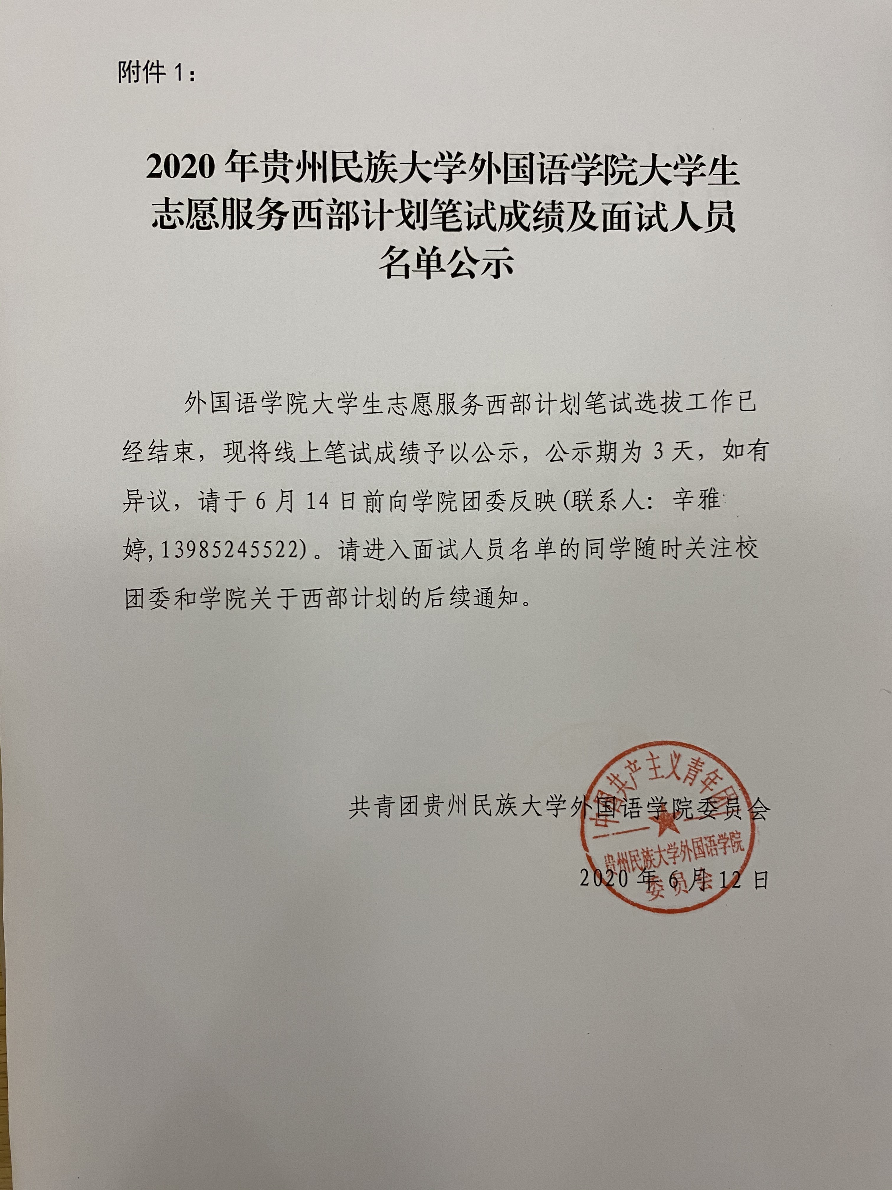 上一条: 关于递补陆承章、骆小利、韦丽伞进入2020年贵州民族大学西部计划面试的公示