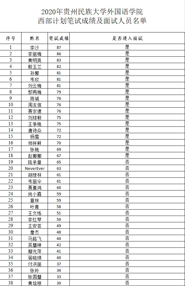 2020年同花顺体育_同花顺(中国)大学生志愿服务西部计划笔试成绩及面试人员名单公示
